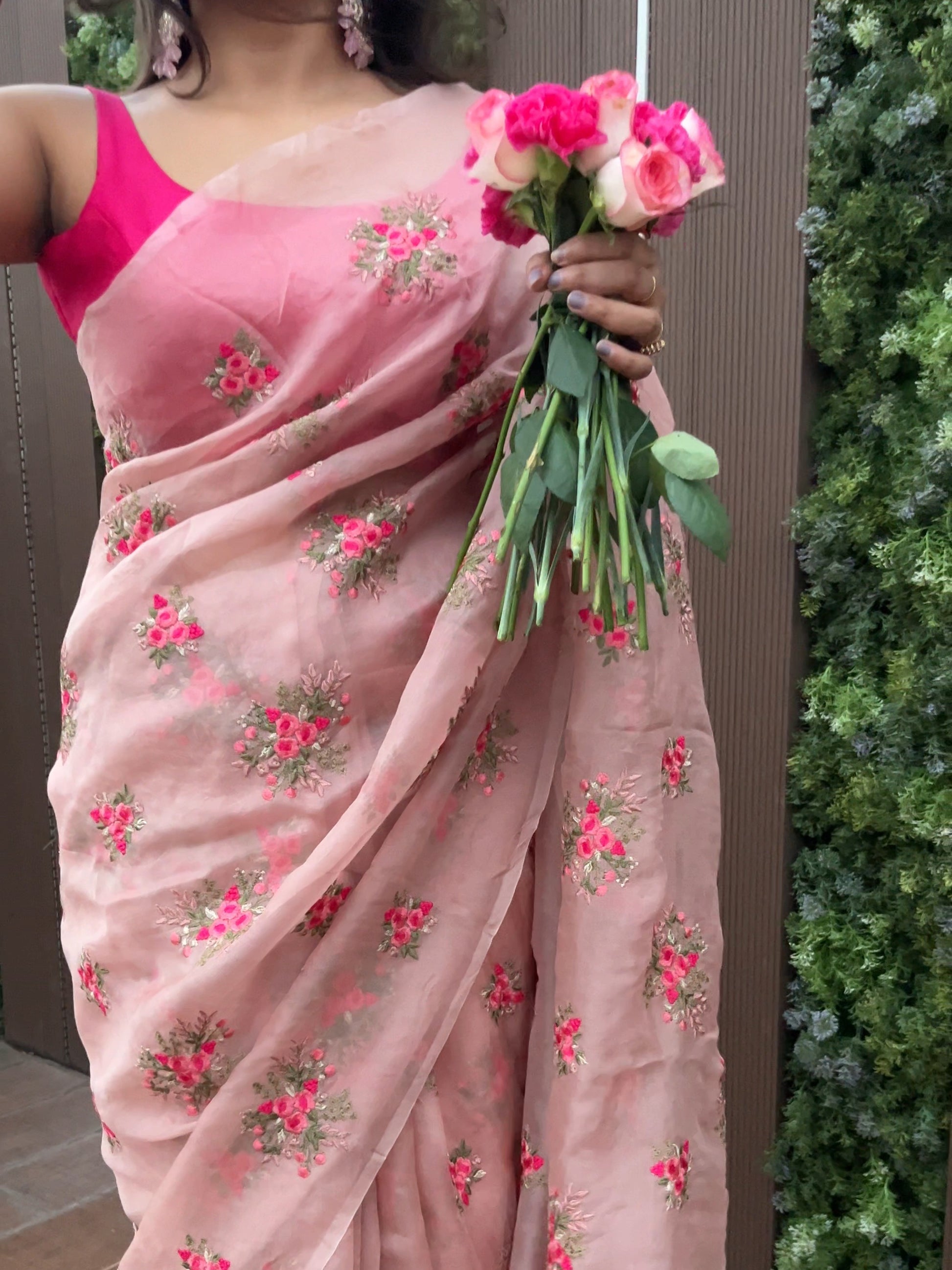- Pure Onion Silk Organza saree with Floral buta embroidery