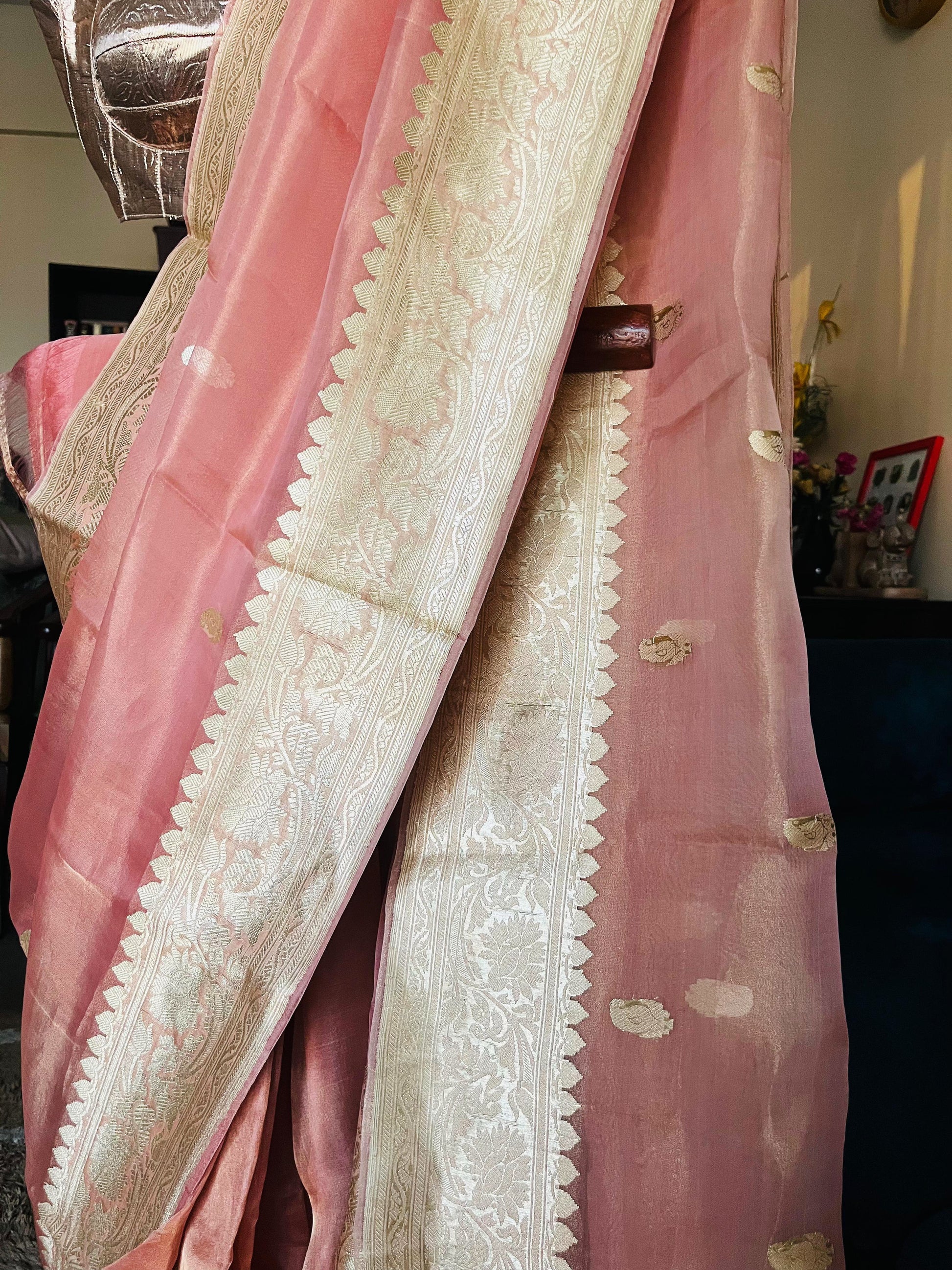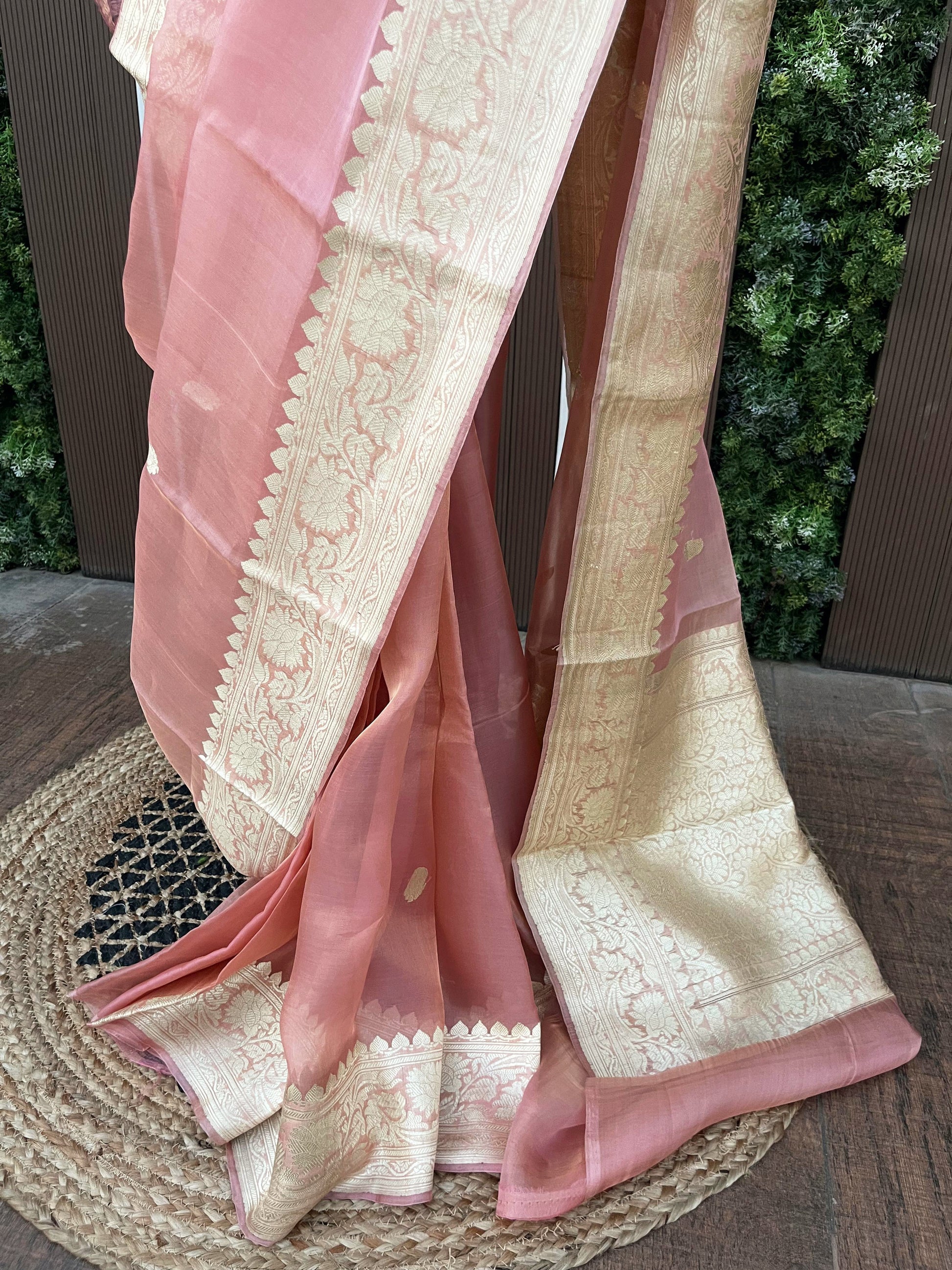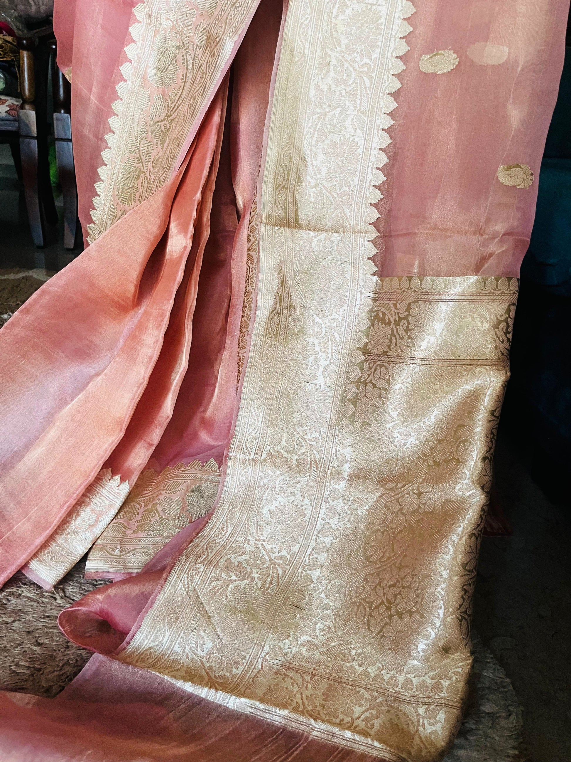 - Handwoven Pure Tissue Silk Banarasi Saree with intricate zari border and pallu