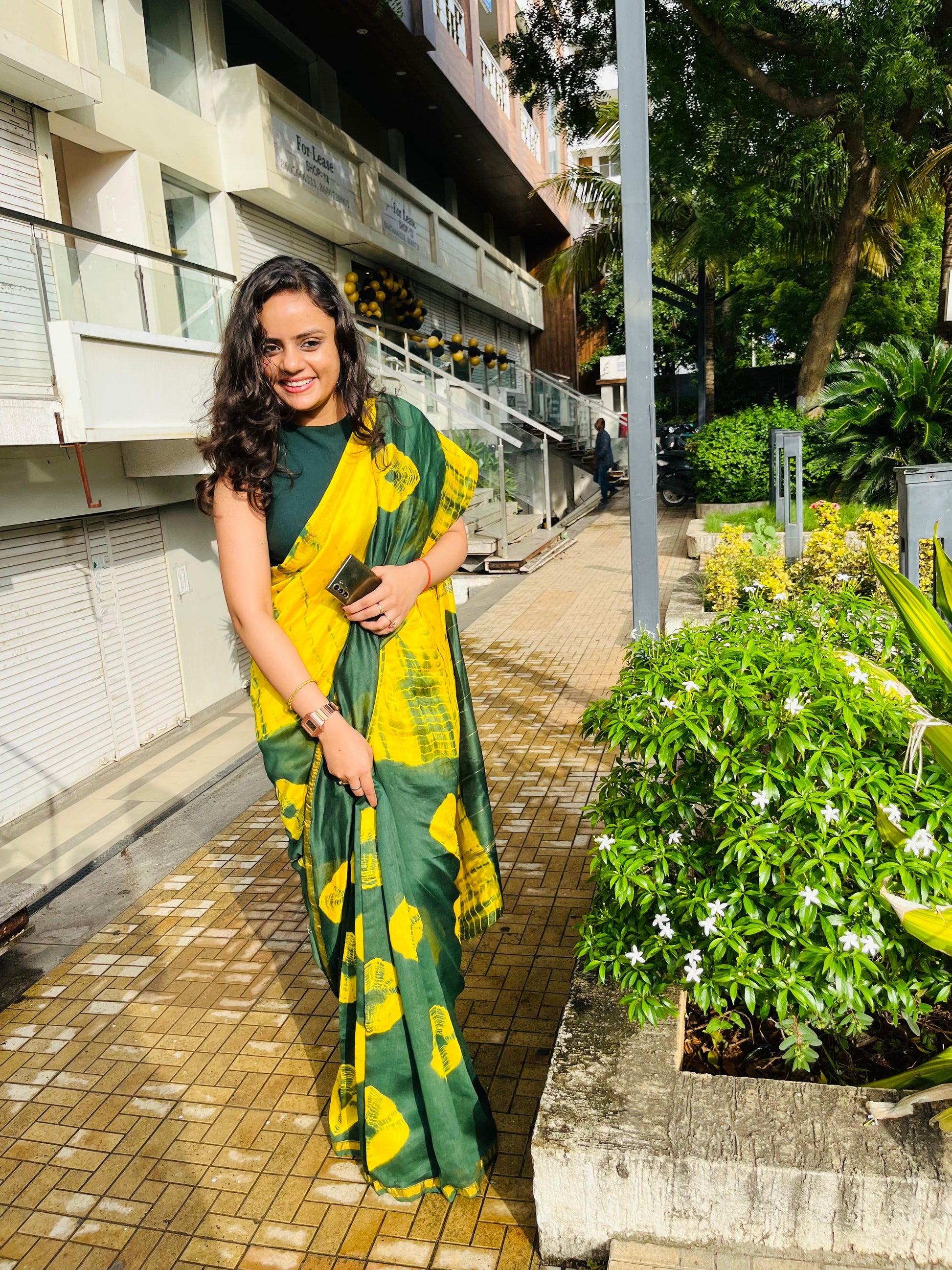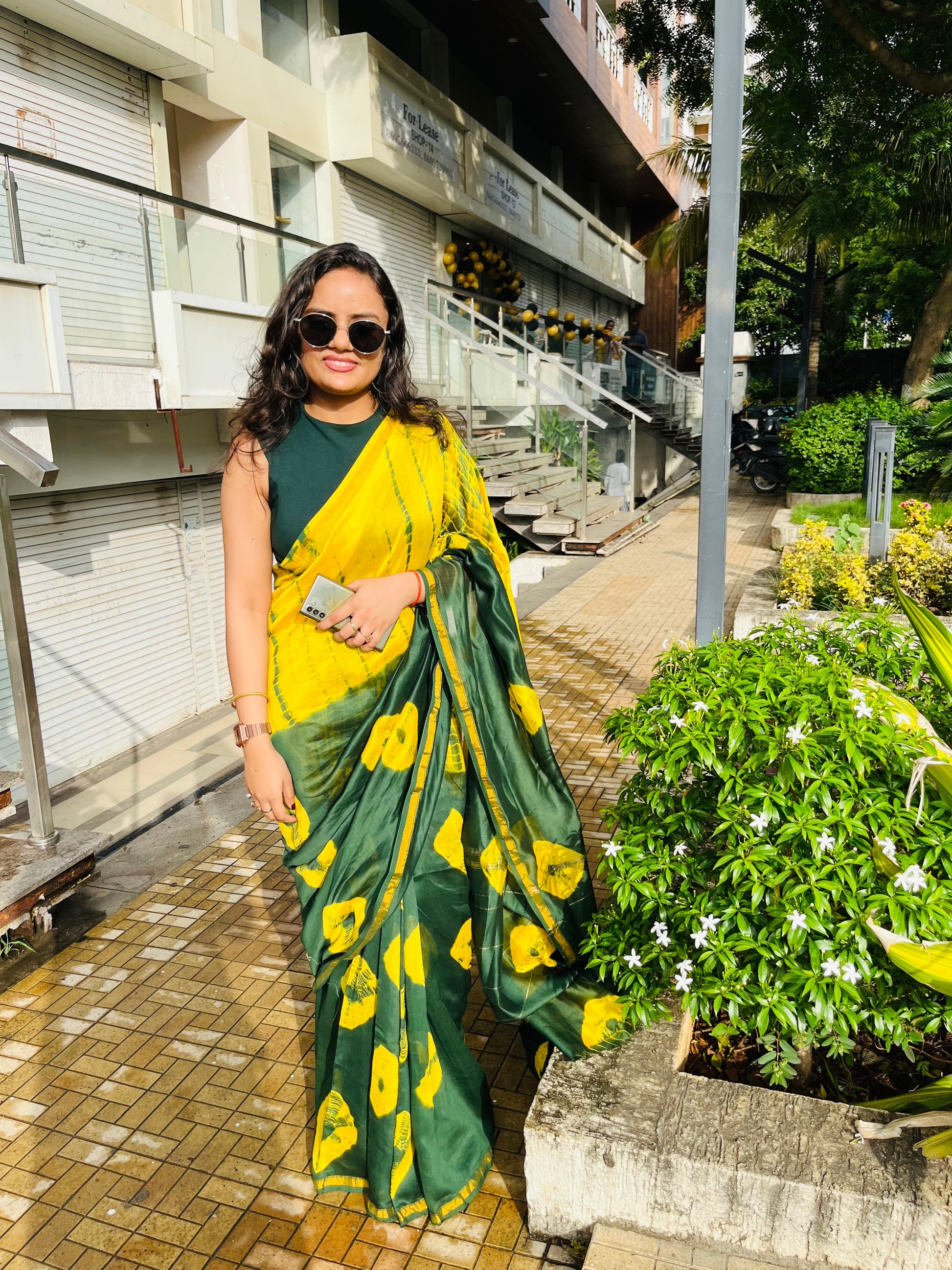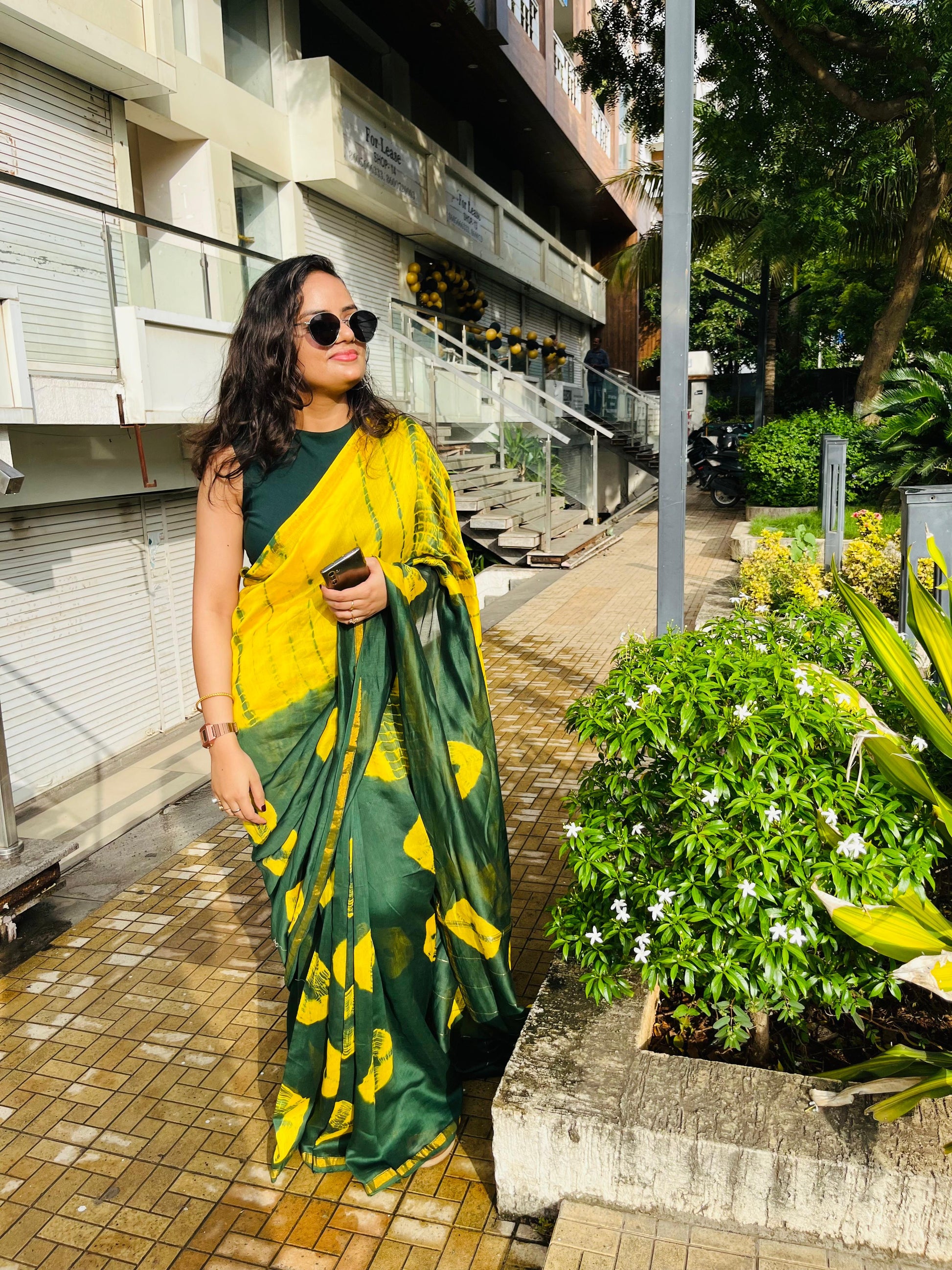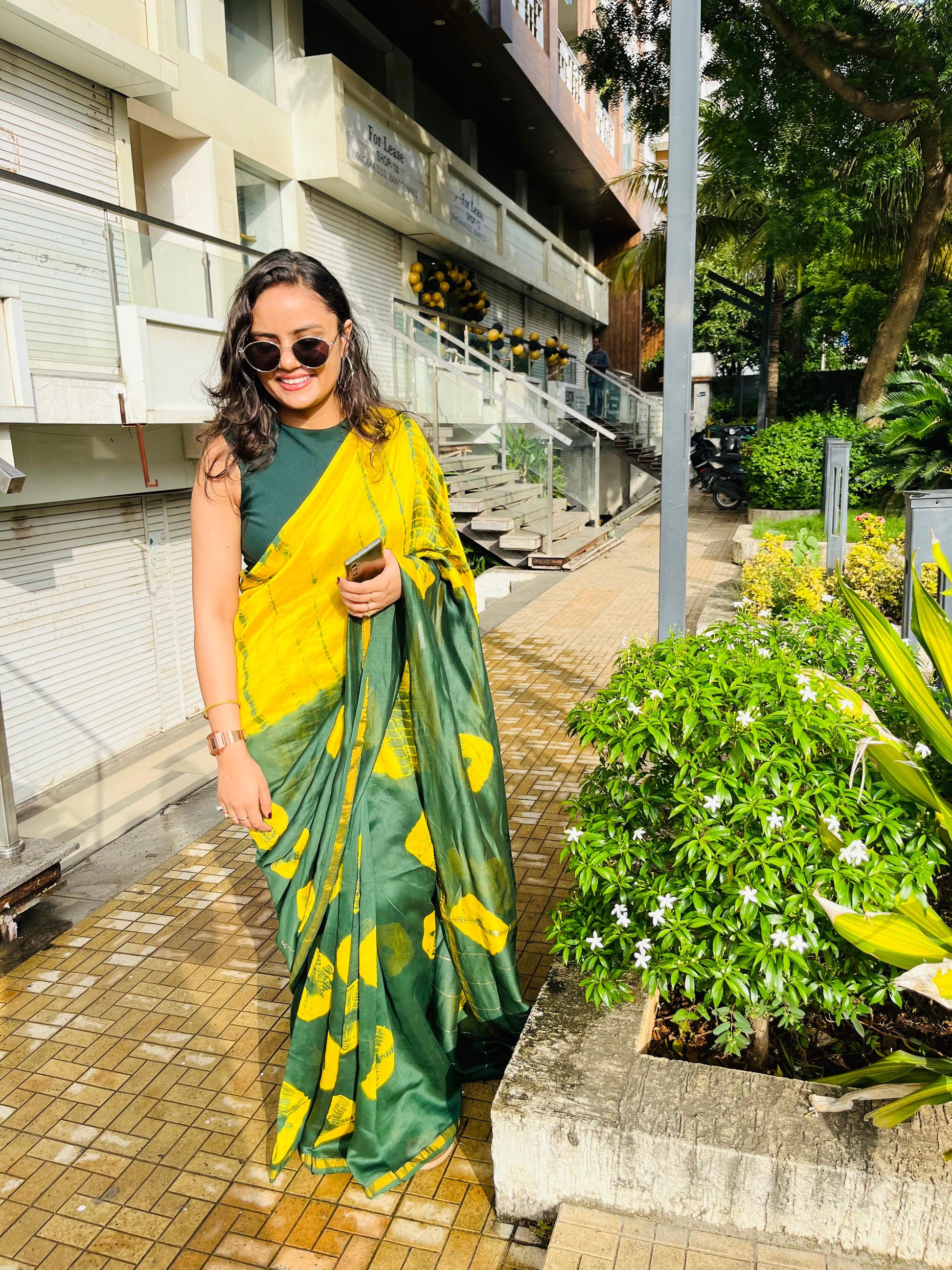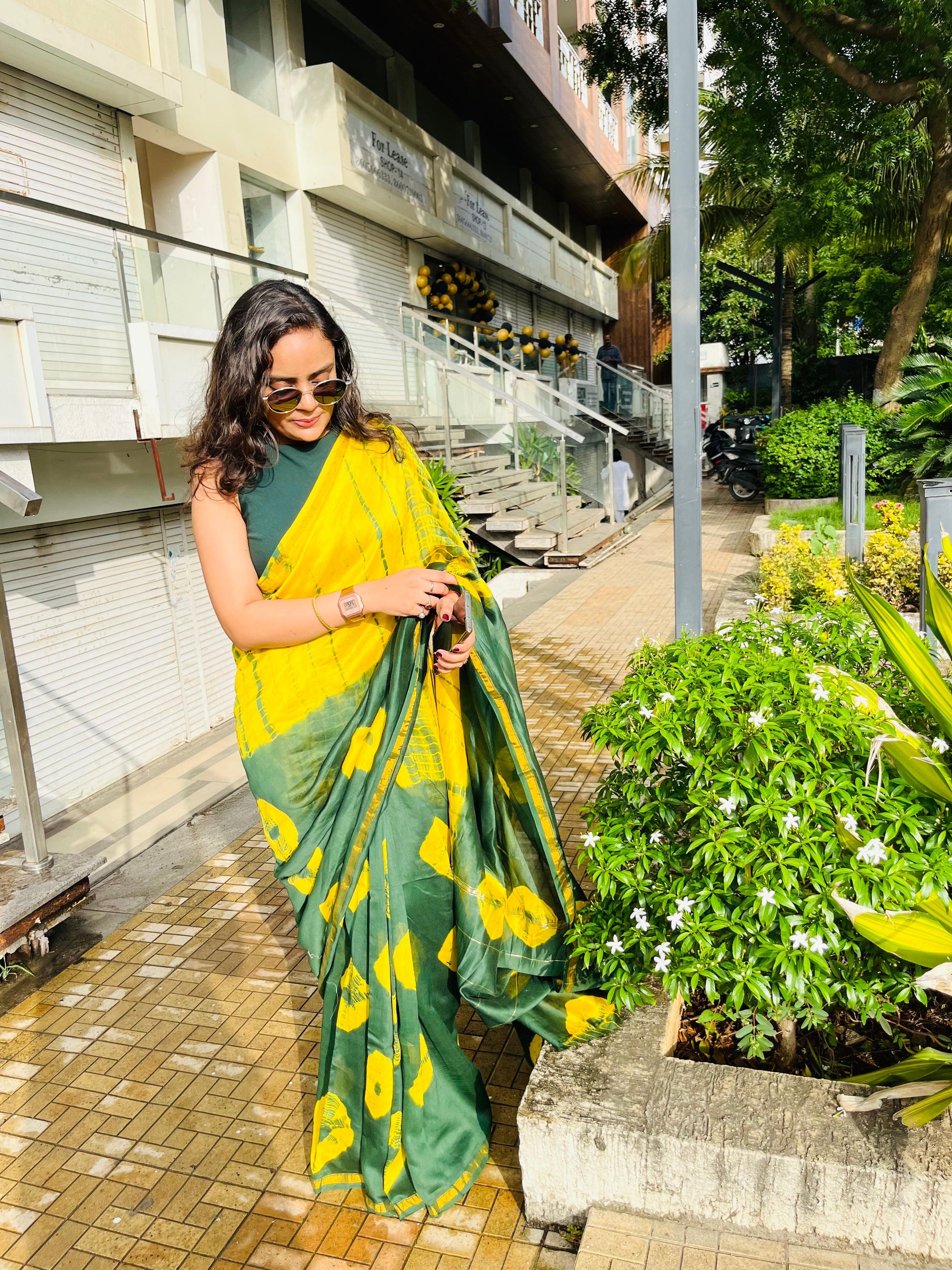 - Half and half Chanderi cotton silk saree in Lime and Green color