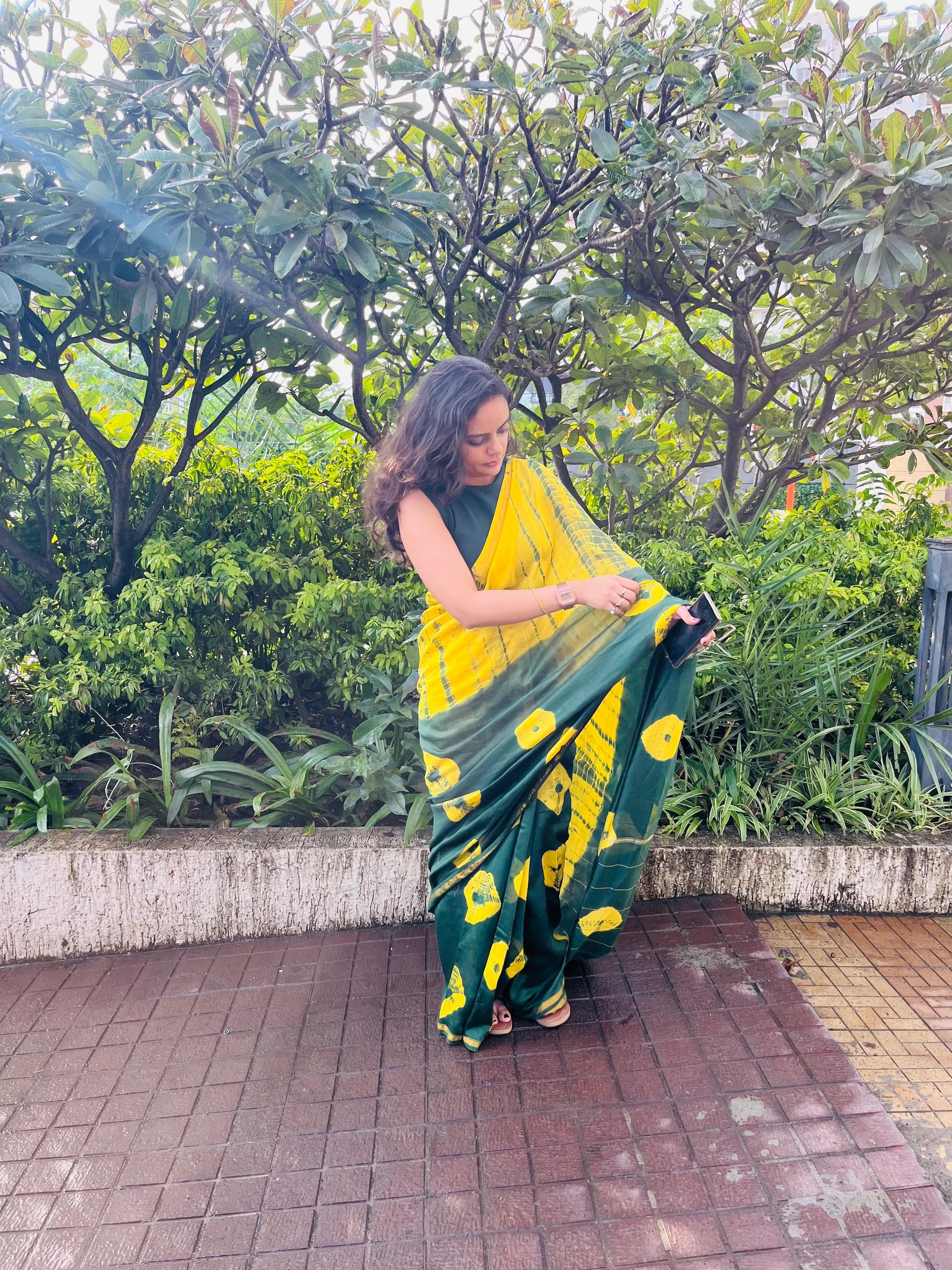 Half and half Chanderi cotton silk saree in Lime and Green color